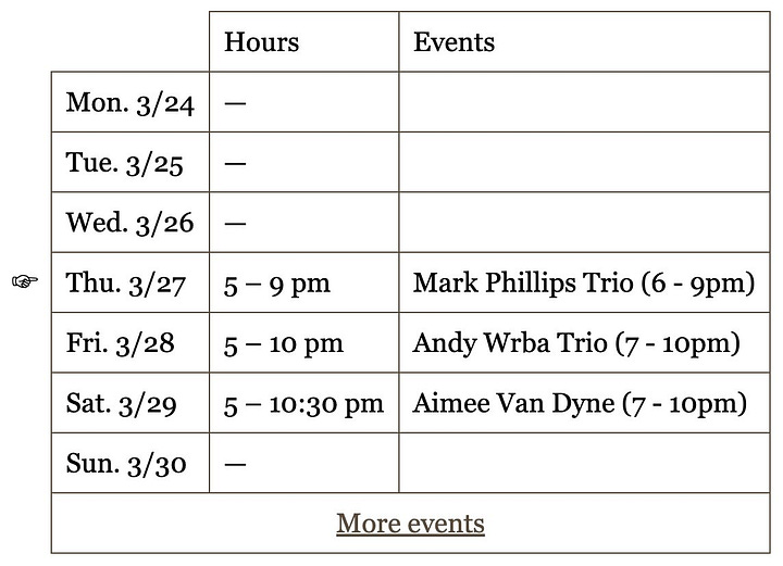 The text sounded stock, too — which is too bad, because the Khaghans really did have a cool vibe going on! They had brought in DJs and bartenders they respected; they threw raucous parties late into the night, invigorating a town emerging from Covid. As I was drafting this I ran into Michael and Katherine in the park and they reminisced about how one of the favorite shows they’ve ever played was in that Ostrich Room era. It was genuinely rollicking. But the site didn’t prove it.