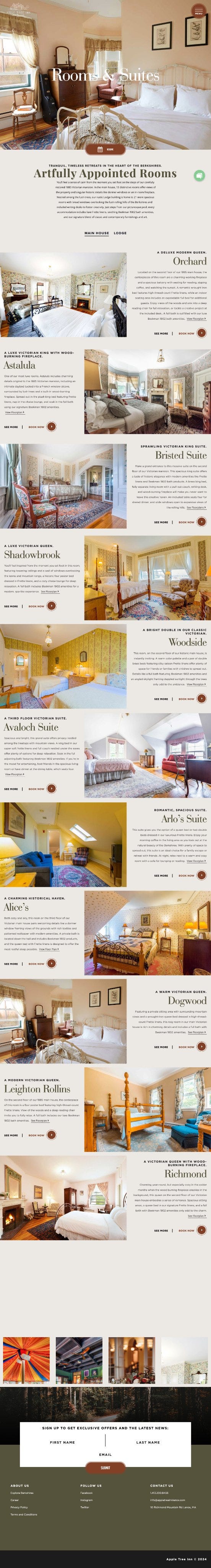 Fifteen years after that college committee, I find myself living the dream, in a position to make a Web site for a physical place. Normally I write this newsletter as a passive observer of my wife’s work; today I’m writing about my only real hotel responsibility: serving as the Webmaster of appletreeinnlenox.com. It’s so much fun to work on. And now, with skin in the game, I can say that the concept above has so far been almost entirely irrelevant.